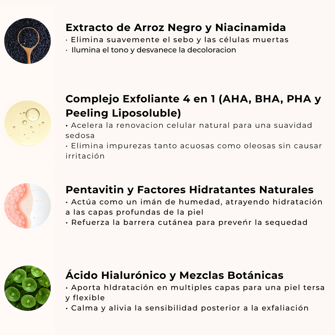 Exfolia y Purifica – Elimina puntos negros, blancos y células muertas para poros más limpios.