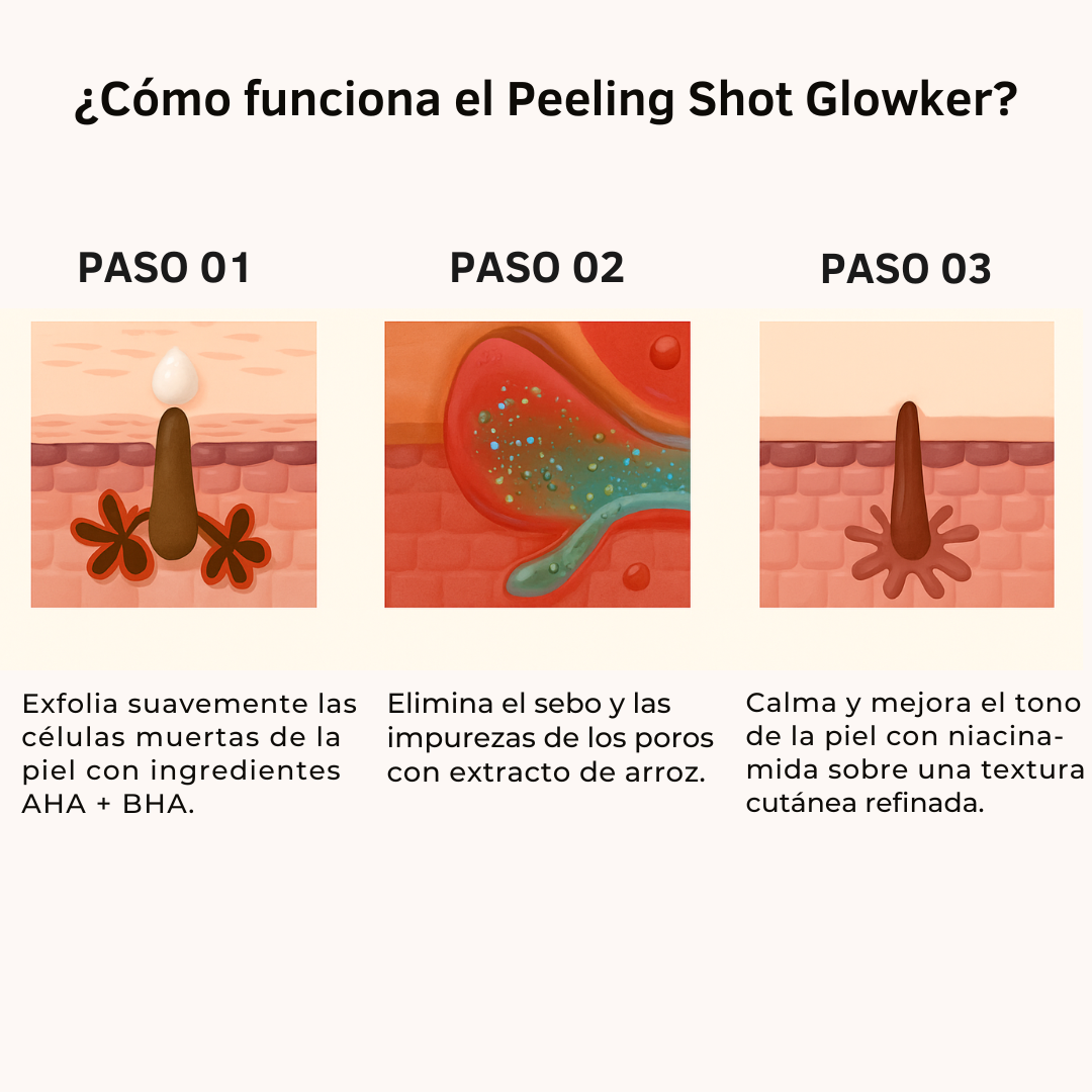 Da el paso y únete a más de 37.896 clientes satisfechos que ya han experimentado los beneficios del Peeling Shot Glowker