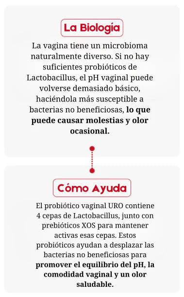 Ya sea que estés lidiando con incomodidad o simplemente desees mantener un bienestar óptimo, estos probióticos te ayudarán a sentirte fresca, cómoda y segura cada día. Añádelos a tu rutina diaria y experimenta los beneficios de una mejor salud vaginal y urinaria.